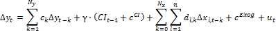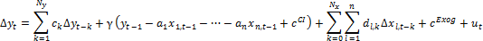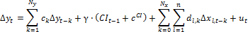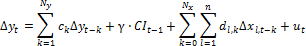ck, al, dl,k, γ. Оцениваемые коэффициенты модели коррекции ошибок;