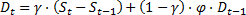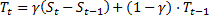 Если каждое последующее значение исходного ряда отличается от предыдущего значения на некоторую достаточно устойчивую величину, то данный ряд имеет тенденцию линейного роста (убывания). В этом случае, в модель экспоненциального сглаживания добавляется коэффициент, учитывающий данную особенность, а именно: