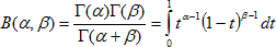 Плотность бета-распределения с параметрами α, β в точке x определяется выражением: