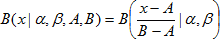 Если распределение определено не на стандартном отрезке [0, 1] (область значений случайной величины), а на произвольном отрезке [A, B] общая функция распределения приводится к стандартной простым масштабированием и будет иметь вид:
