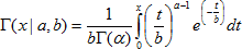Плотность гамма-распределения с параметрами a, b в точке x определяется выражением: