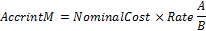 AccrintM(Issue: DataTime; Settlement: DataTime; Rate: Double; NominalCost: Double; [Basis: Integer = 0]): Double;