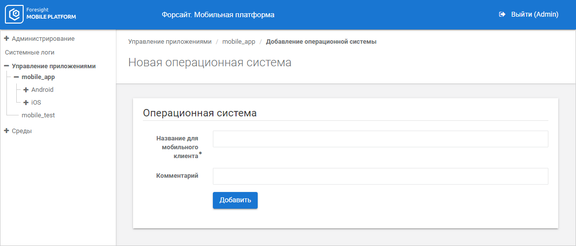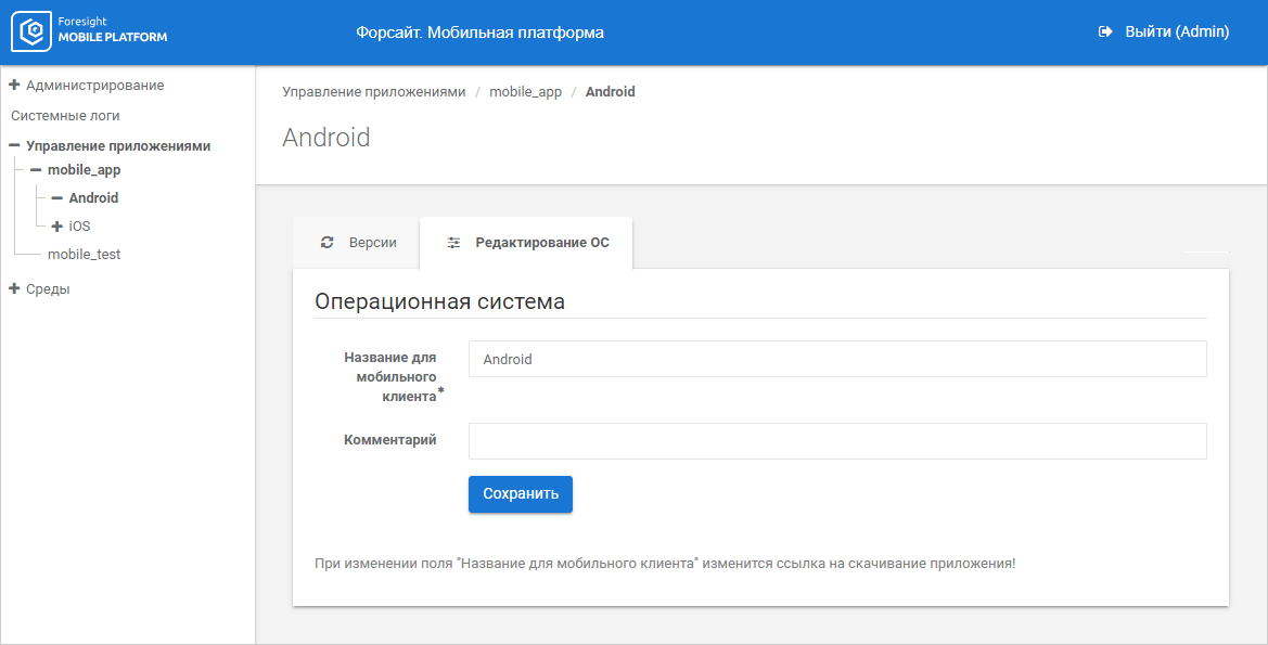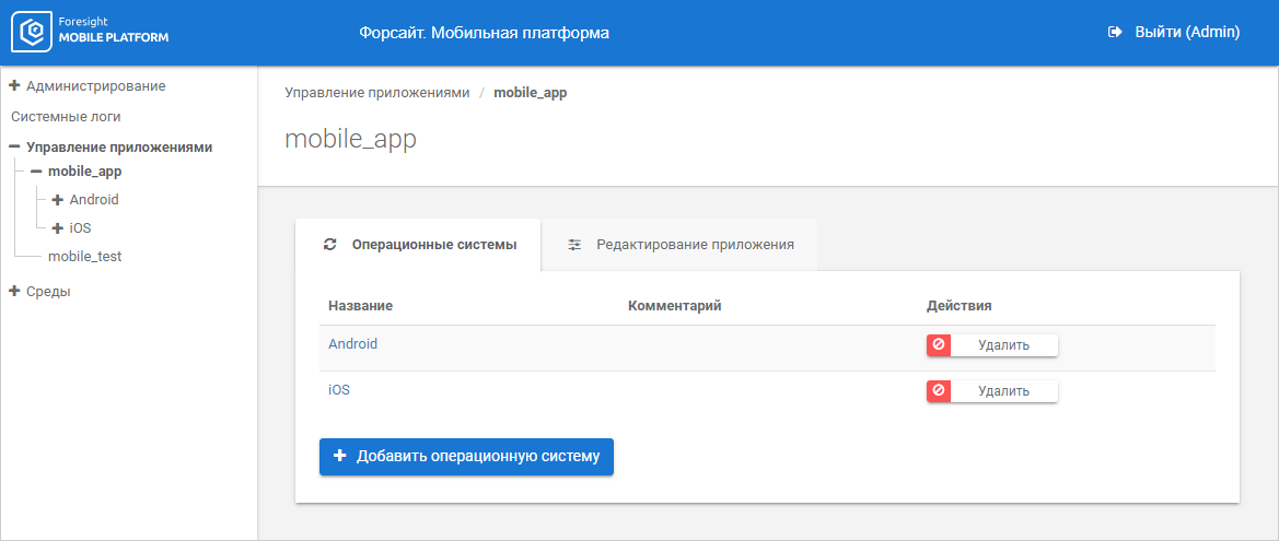 Управление приложениями | Загрузка дистрибутивов приложения