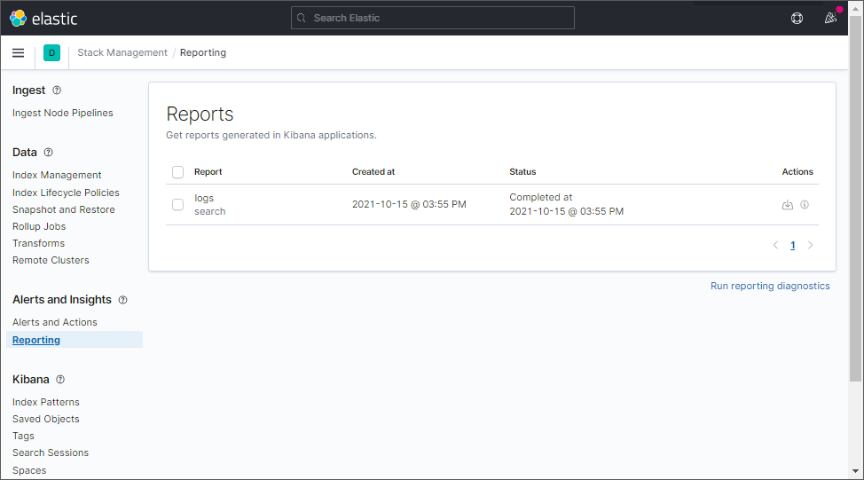 Для экспорта технических логов в приложении Kibana: