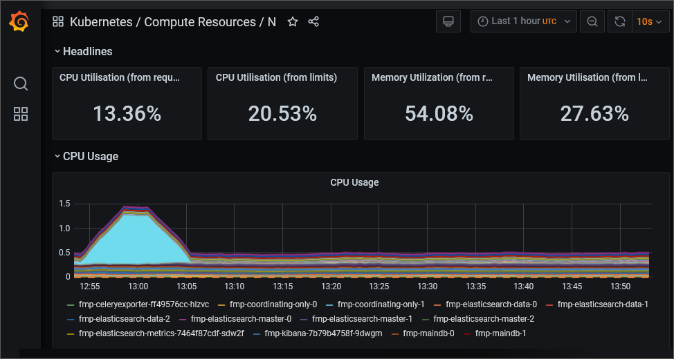 Просмотр объёма потребления системных ресурсов узлами кластера