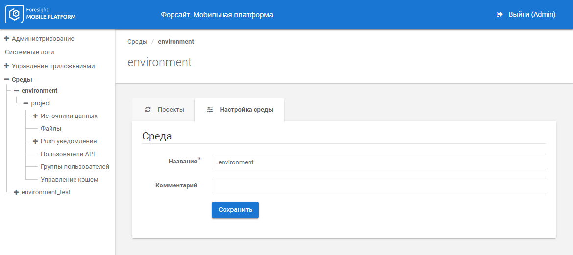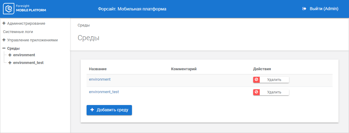 Для настройки сред используйте раздел «Среды»: