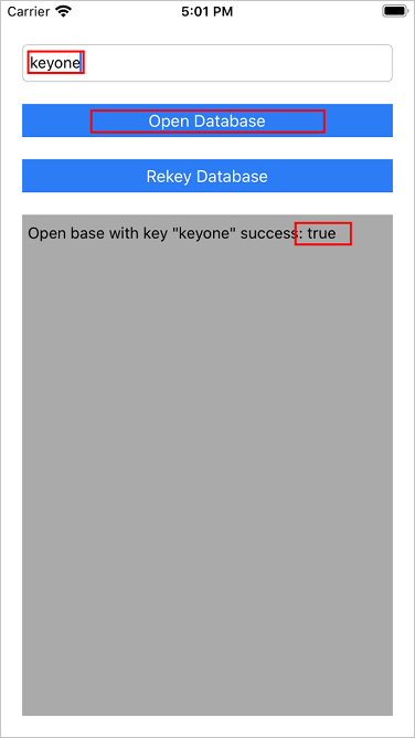 self.resultTextView.text = "Open base with key \"\(key)\" success: \(self.openDatabase(databaseName, key: key))"