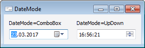 Если свойству установлено значение CalendarDateMode.ComboBox, то компонент используется для отображения и изменения значения даты. Дату можно изменять с помощью раскрывающегося календаря, либо ввести значение дня, месяца и года вручную. Если свойству установлено значение CalendarDateMode.UpDown, то компонент используется для отображения и изменения значения времени. Время можно изменять с помощью кнопок SpinUp и SpinDown, либо ввести значение часа, минут и секунд вручную.