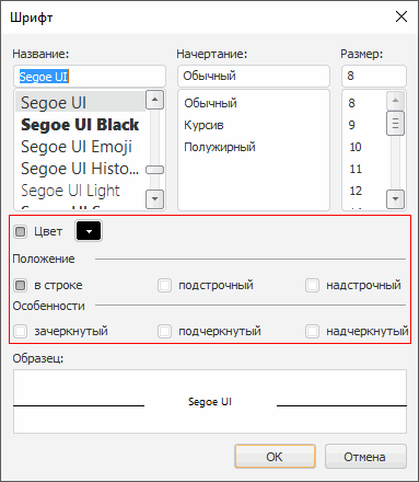 По умолчанию свойству установлено значение True. Если свойству установить значение False, то элементы, позволяющие задавать параметры цвета, положения, зачеркивания и подчеркивания текста отображаться не будут.