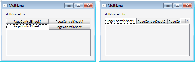 Свойство MultiLine определяет, будут ли вкладки для страниц компонента размещаться в несколько рядов, если они не помещаются в один ряд.