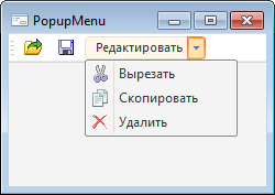 Свойство PopupMenu определяет контекстное меню, связанное с текущей кнопкой панели инструментов.