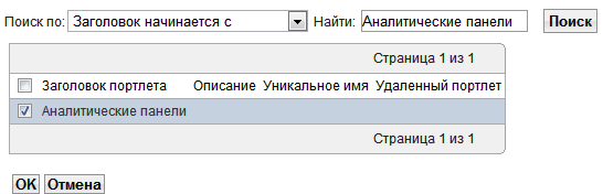 На открывшейся странице выберите портлет, который нужно установить, из следующего списка: