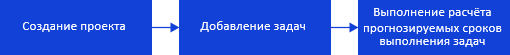 Рассмотрим пример создания проекта, добавления задач и расчёта прогнозируемых сроков выполнения задач.