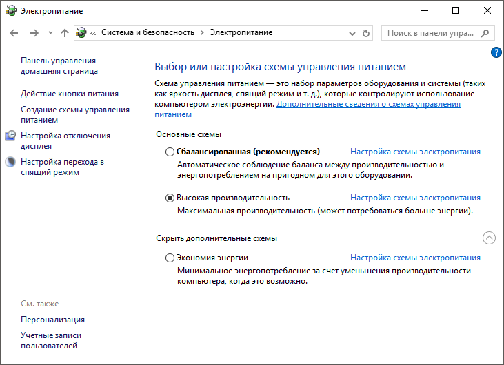 1. Установите переключатель «Высокая производительность»: