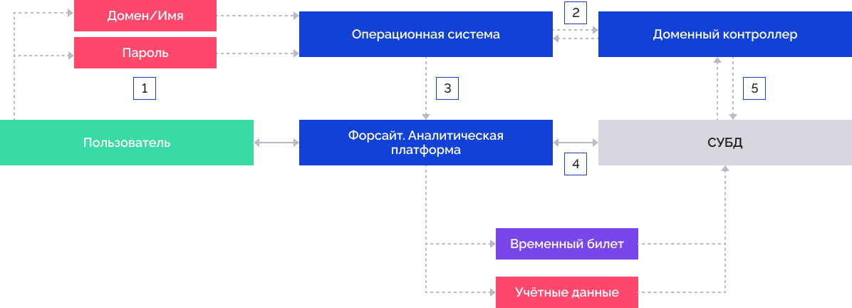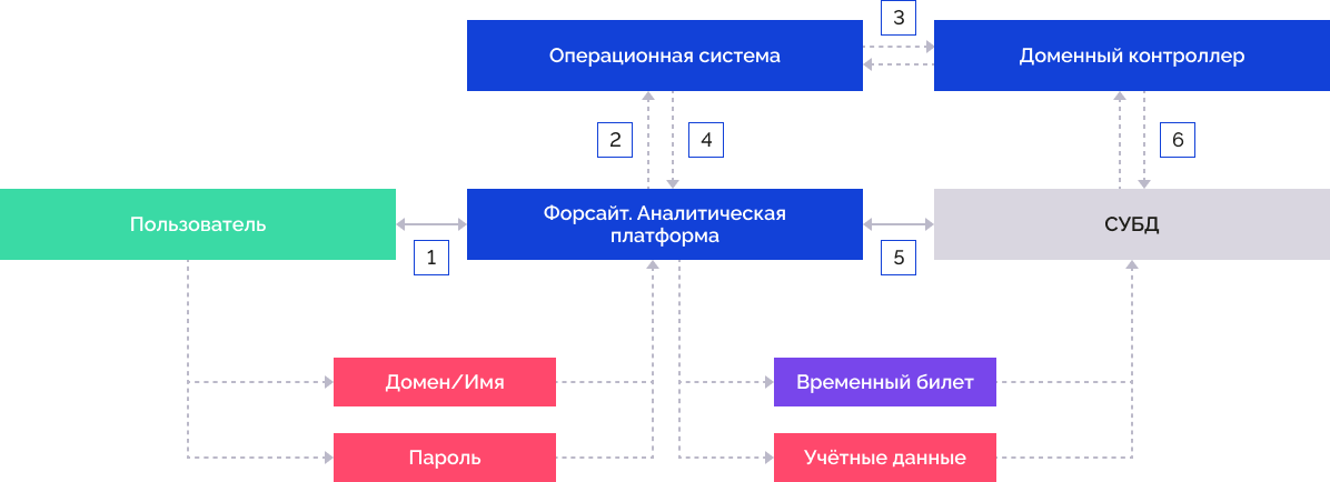 1. «Форсайт. Аналитическая платформа» передаёт указанные учётные данные в операционную систему.