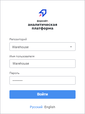 1. Пользователь вводит имя пользователя и пароль в окне регистрации «Форсайт. Аналитическая платформа»: