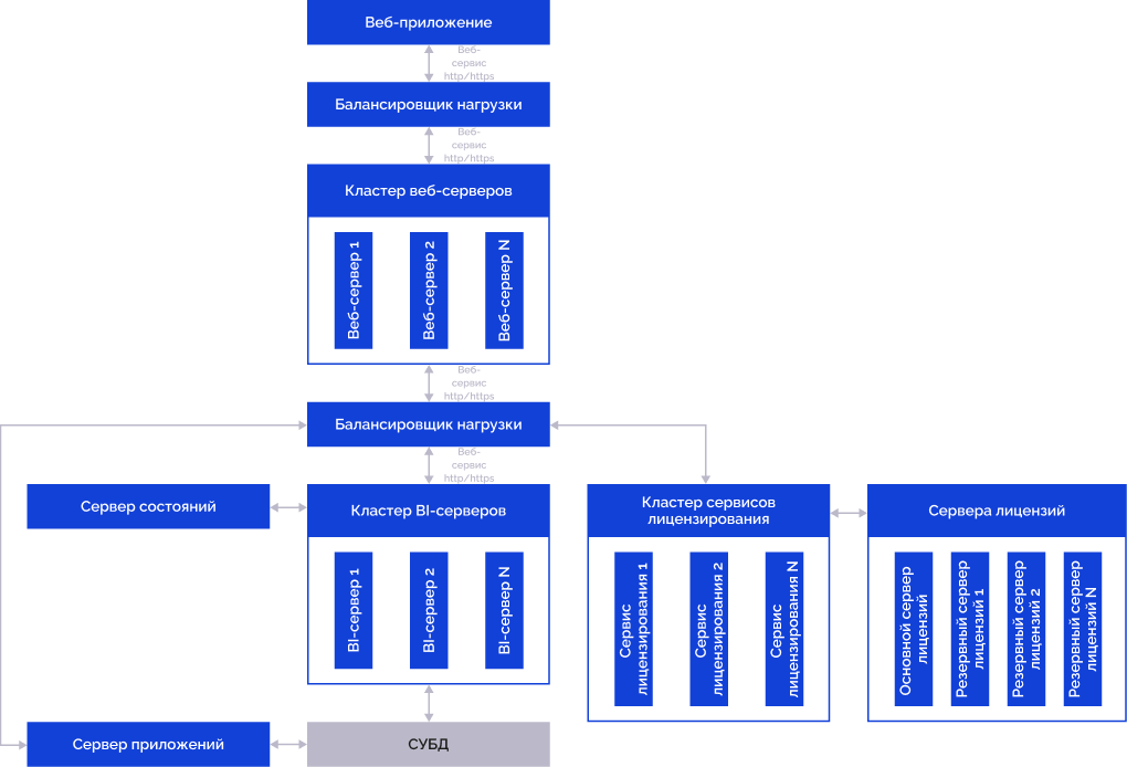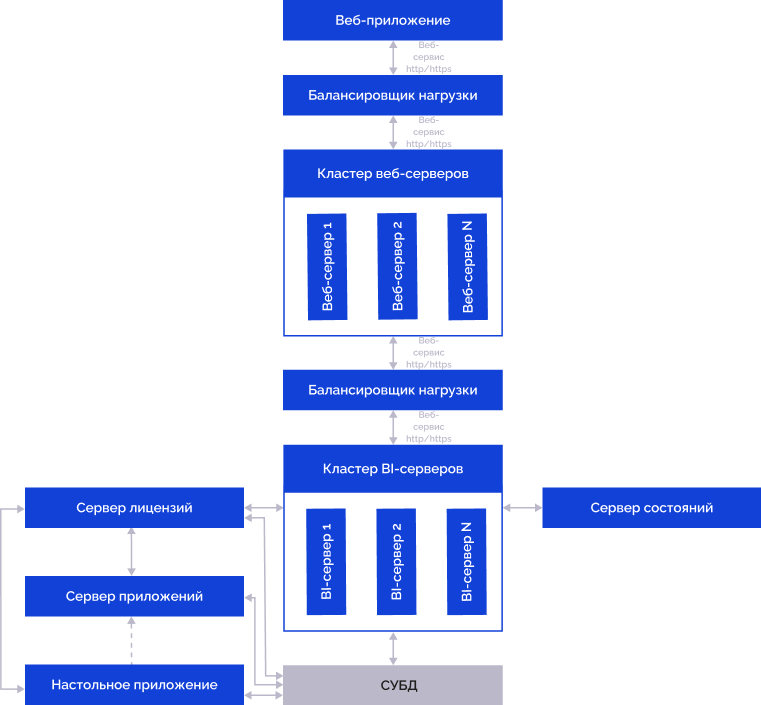 Примечание. Сервер приложений может быть совмещен с BI-сервером.