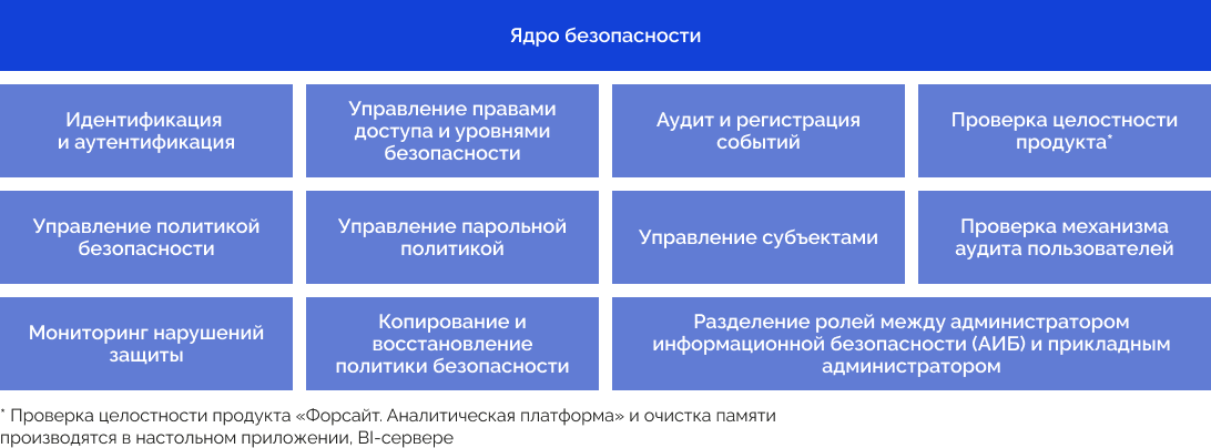 Ядро безопасности обеспечивает выполнение функций администрирования и информационной безопасности. |