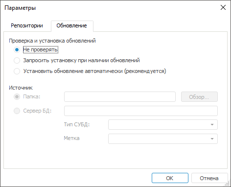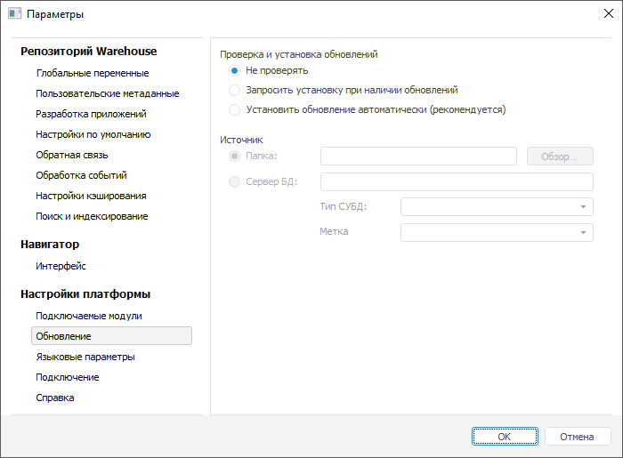 Установить обновление автоматически (рекомендуется). Если в источнике обнаружена более поздняя сборка, то обновление будет происходить автоматически при запуске «Форсайт. Аналитическая платформа», без каких-либо запросов;