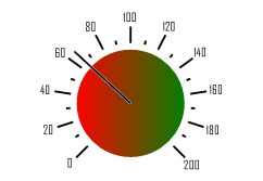 После выполнения примера при нажатии на кнопку будет настроено оформление круга, расположенного в центре спидометра компонента «SpeedometerBox1». Для круга будет настроено градиентная заливка фона, сам круг будет расположен за стрелкой спидометра. Радиус круга - 0,7 от радиуса спидометра.