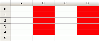 После выполнения примера для выделенной области ячеек(A0:D4) цвет фона второй полосы столбцов будет изменен на красный: