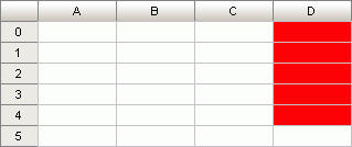После выполнения примера для выделенной области ячеек(A0:D4) цвет фона последней полосы столбцов будет изменен на красный: