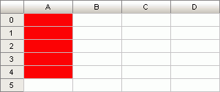 После выполнения примера для выделенной области ячеек(A0:D4) цвет фона заголовков строк будет изменен на красный: