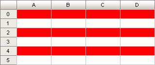 После выполнения примера для выделенной области ячеек(A0:D4) цвет фона первой полосы строк будет изменен на красный: