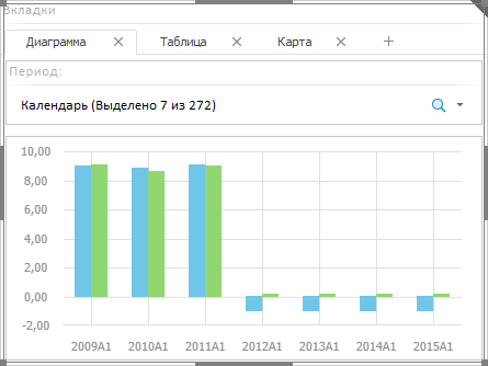 Вкладки - многостраничный элемент-контейнер, позволяющий объединить в группу несколько объектов аналитической панели. При работе отображается содержимое только одной вкладки.
