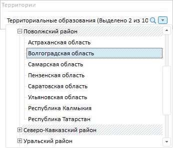 Пример элемента управления «Раскрывающийся список»:
