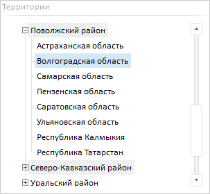 Пример элемента управления «Список»: