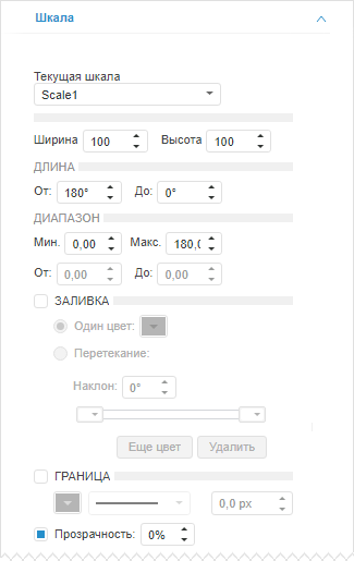 Прозрачность. Параметры прозрачности шкалы. По умолчанию флажок установлен и доступна настройка степени прозрачности шкалы: 100% соответствует полной прозрачности (шкала станет невидимой), 0% соответствует полной непрозрачности.