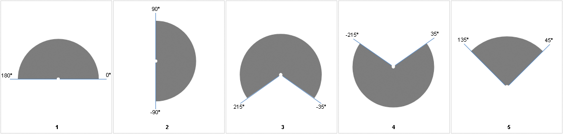 Длина. Укажите длину шкалы в градусах. Задайте значения в полях «От» и «До» в диапазоне [-360; 360]. Сумма абсолютных значений полей «От» и «До» не должна превышать 360 градусов. Отрисовка шкалы выполняется по часовой стрелке.