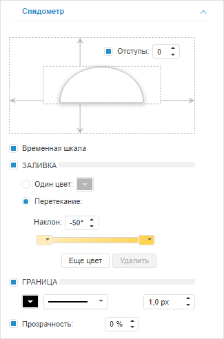 Заливка. Параметры заливки фона индикатора. По умолчанию флажок снят и заливка фона не применяется. Для настройки заливки установите флажок и установите переключатель, соответствующий способу заливки: