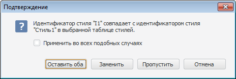 Если идентификатор экспортируемого стиля совпадает с идентификатором стиля из , будет выдано сообщение для выбора действия: