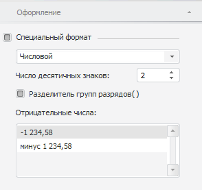 Для изменения настроек формата данных, установите флажок «Специальный формат»: