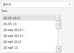 В раскрывающемся списке выберите один из поддерживаемых форматов данных.
