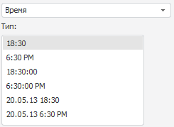 В раскрывающемся списке выберите один из поддерживаемых форматов данных. В зависимости от выбранного формата будут доступны различные настройки: