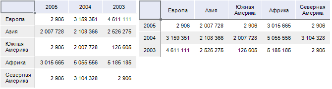 Пример таблицы до и после поворота: