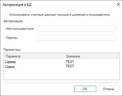 1. Авторизация. Если в конфигурационном файле планировщика задач задано значение параметра <Credentials Authentication="0"/>, то при запуске планировщика задач будет открыт диалог «Авторизация в БД» для определения типа авторизации: