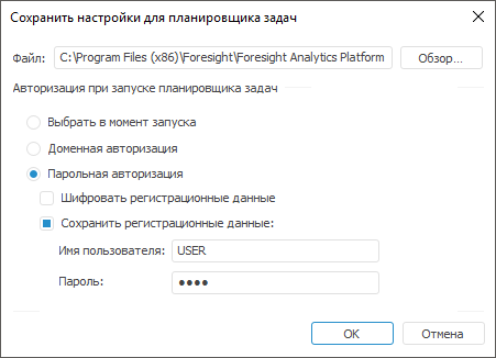 Создайте конфигурационный файл. Конфигурационный файл формируется автоматически из контейнера запланированных задач. По умолчанию конфигурационный файл называется Scheduler.xml и сохраняется в папку установки «Форсайт. Аналитическая платформа».