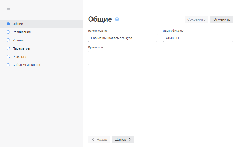 Для настройки общих параметров задачи в мастере настройки задачи: