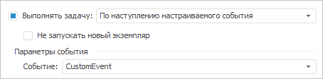 При выборе варианта «По наступлению настраиваемого события» задача будет выполняться при наступлении пользовательского события, которое вызывается из кода на Fore. На странице/вкладке «Расписание» будет доступен выбор пользовательского события: