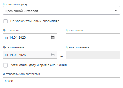 Время начала. Задаёт время запуска задачи. Доступно только в веб-приложении;