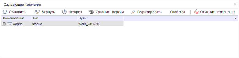 Данная панель предназначена для работы с объектами, включенными в систему управления версиями. На панели отображаются объекты, содержащие несохраненные на сервере изменения.