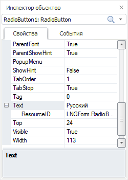 Примечание. Для свойства Text значение атрибута «ResourcesID» будет состоять только из имени компонента, содержащего объект, и имени объекта, разделенных точкой.