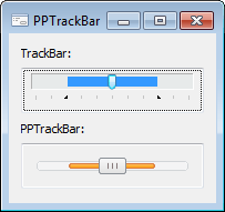 В отличии от TrackBar стиль компонента PPTrackBar не зависит от оформления и настроек операционной системы. Функциональные настройки и возможности компонентов PPTrackBar и TrackBar одинаковые.