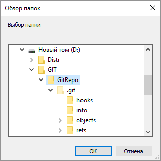 Выберите папку, в которой будут храниться файлы объектов репозитория, и нажмите кнопку «ОК».