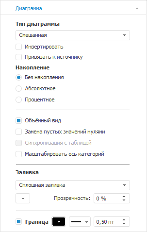 Вкладка «Диаграмма» расположена на боковой панели и предназначена для настройки общих параметров диаграммы.