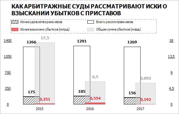 1. Диаграмма «Как арбитражные суды рассматривают иски о взыскании убытков с приставов»: